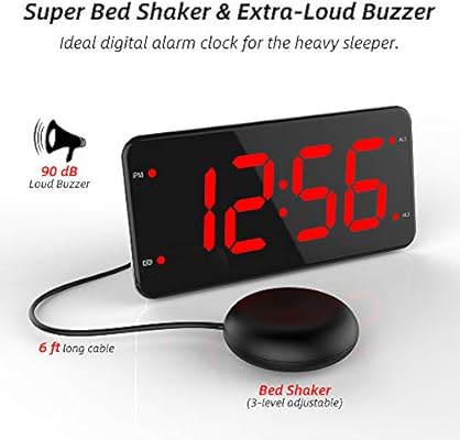 Alarm Clock Loud Ringer: Flashing vibrant light with dimmer option.